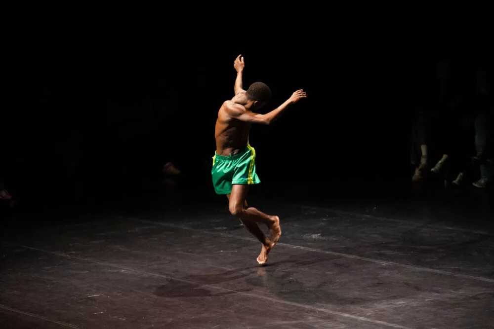 Puff explores the concept of “disguise” as a recurring element in dances of the African diaspora—an element that transmits silenced cultures by concealing techniques, messages, traditions, or ancestral knowledge. The work explores the development of footwork techniques such as extremely rapid steps and the dissociation of body parts, which create illusions and suggest that something is being deliberately hidden from view. Puff—a light breath—also carries, in Portuguese, the meaning of something that vanishes as if by magic.